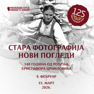 Manak's HouseGavrila Principa 5 Permanent ExhibitionPermanent ExhibitionTime: 10:00 - 17:00 Traditional Costumes and Jewelry from the Central Balkan Region of the 19th and Early 20th Century Manak's House Gavrila Principa 5 | 26“Old Photographs – New Perspectives”“Old Photographs – New Perspectives”Time: 10:00 - 17:00 Exhibition "Old photographs - New Perspectives" marking the 140th anniversary of the birth of Hristifor Crnilović